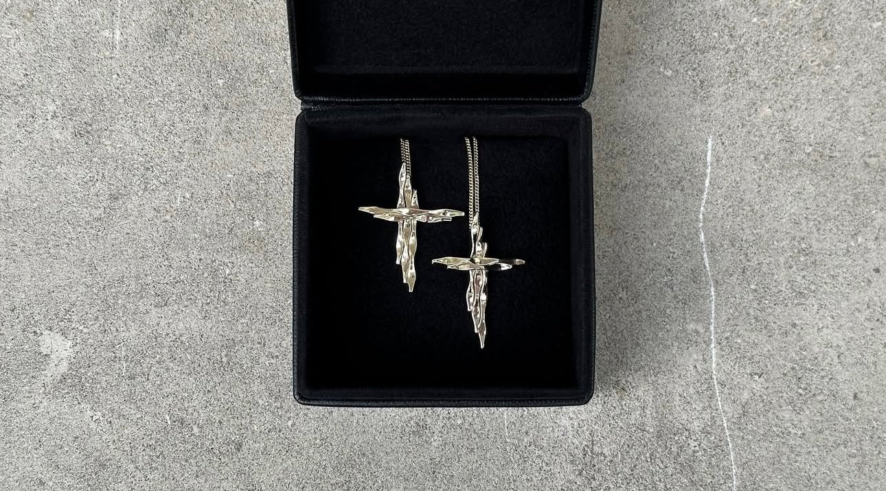 A handcrafted cross pendant with a seamlessly flowing, delicate design, an elegant fine jewellery staple for everyday wear.