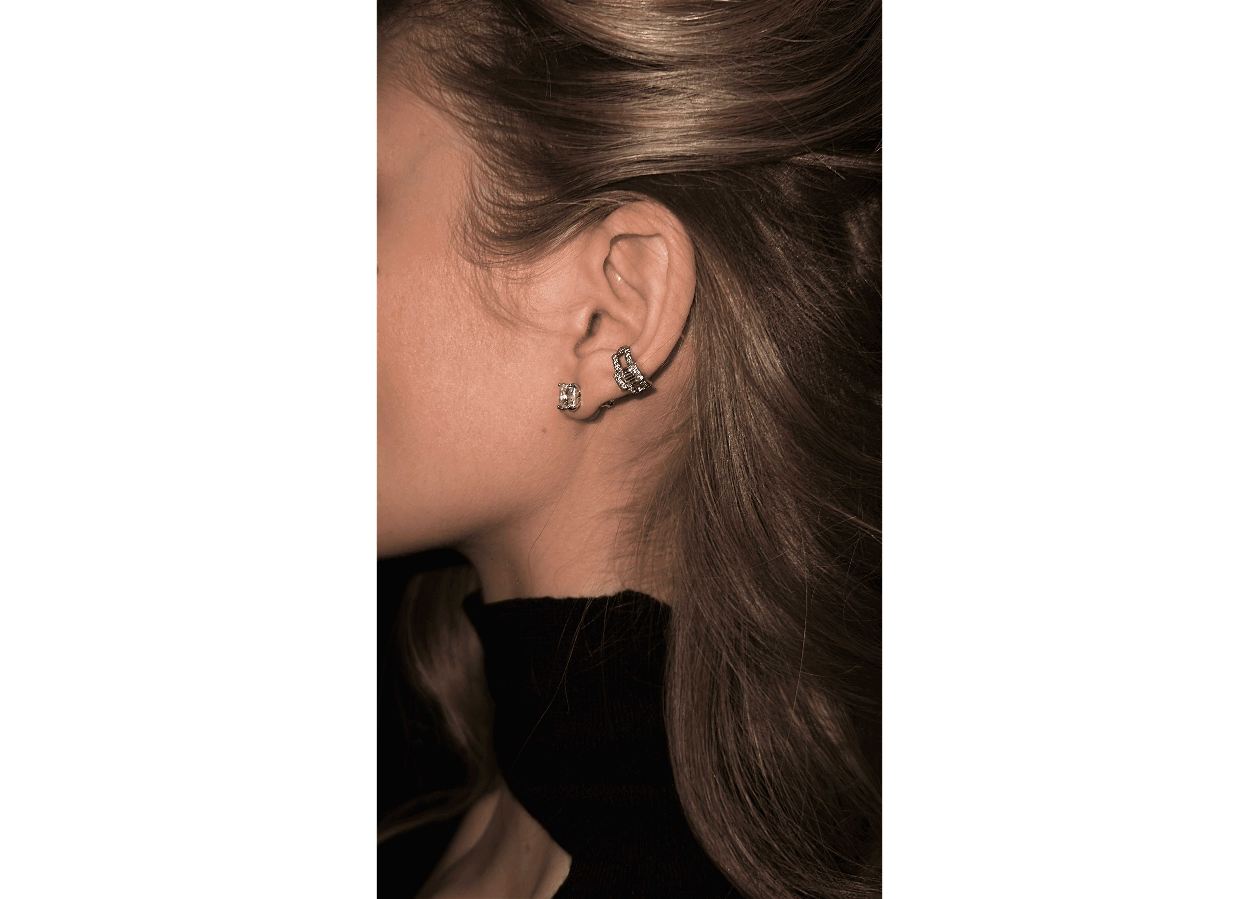 A modern diamond ear cuff inspired by antique art deco design. Clean lines and architectural detailing meet subtle sparkle, creating an effortless statement that pairs seamlessly with your everyday stud.